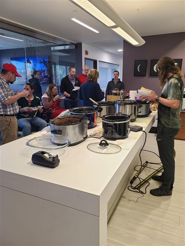 October 31st, 2025 – Boulder: Odyssey Boulder turned up the heat on team spirit with a Halloween chili cookoff that blended bold flavors, festive flair, and a dash of friendly rivalry. With crockpots bubbling and costumes in full swing, our crew brought their A-game to the kitchen—and the judging table. From classic reds to inventive white chilis, each entry showcased a unique take on comfort food with a competitive twist. Whether seasoned chef or daring first-timer, everyone left with full bellies, warm hearts, and maybe a new respect for cumin calibration. Congratulations to our winners Regan and Dan for bringing the flavor and taking home the chili crown!